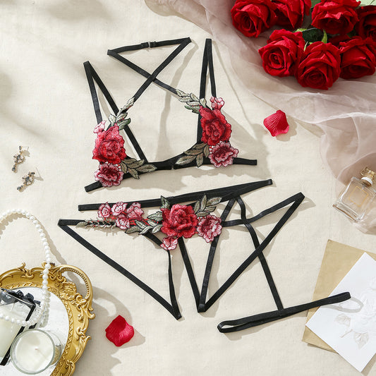 Turn up the heat with this Floral Embroidery Heavy Industry Cross Lingerie Set for Women, combining delicate floral patterns with bold, edgy design elements. The cross strap details and see-through mesh enhance curves while delivering a provocative and confident look.Crafted with soft, breathable fabrics, this set includes a bra and...