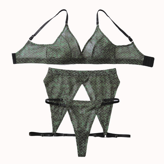 Turn up the heat with this plus size snake print lingerie split set, designed to flatter and shape your curves. The comfortable back shaping feature provides gentle support while enhancing your silhouette, and the bold snake print adds a daring, stylish touch. Crafted from soft, stretchy material, the set ensures...