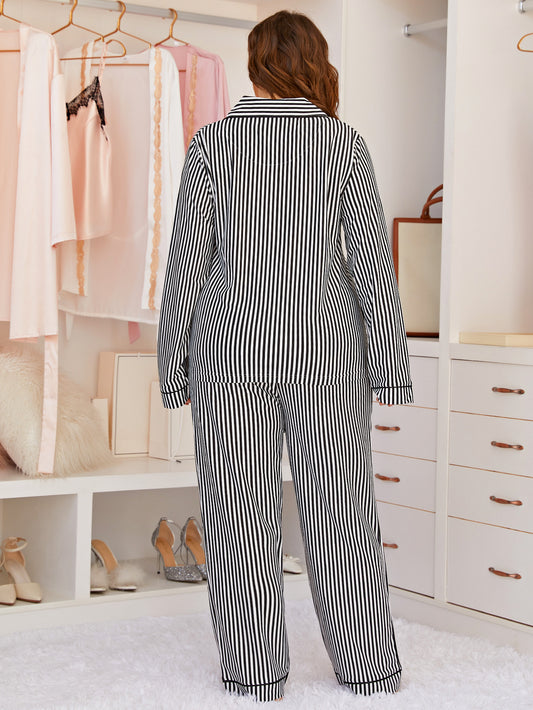 Stay warm, stylish, and relaxed with this Plus Size Vertical Stripe Knitted Pajama Set, created specifically for curvy women who value both comfort and elegance. Made from soft, breathable knitted fabric, this two-piece set offers all-day coziness and a flattering fit for lounging, sleeping, or enjoying quiet moments at home...
