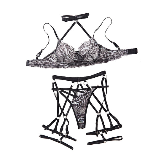 Unleash your wild side with the Zebra Print Halter Mesh Detachable Strap Lingerie Set, designed to accentuate and celebrate plus size curves. This daring set features a bold zebra pattern, breathable mesh panels, and strategic hollow-out sections that highlight your figure with seductive flair. The detachable straps allow for customizable...