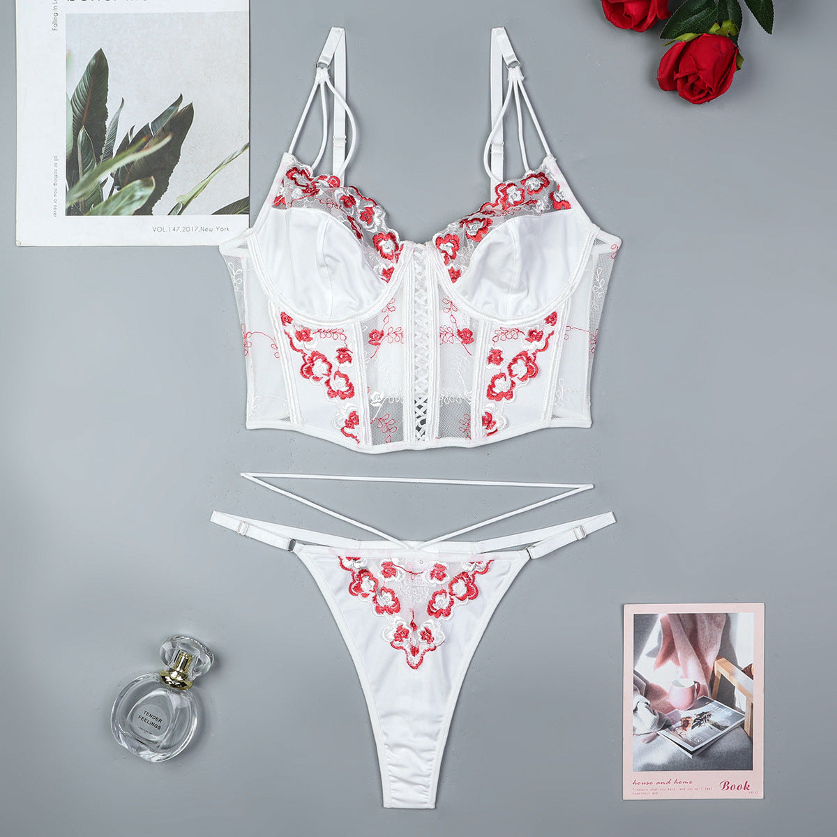 Turn up the heat with this Floral Embroidery Heavy Industry Cross Lingerie Set for Women, combining delicate floral patterns with bold, edgy design elements. The cross strap details and see-through mesh enhance curves while delivering a provocative and confident look.