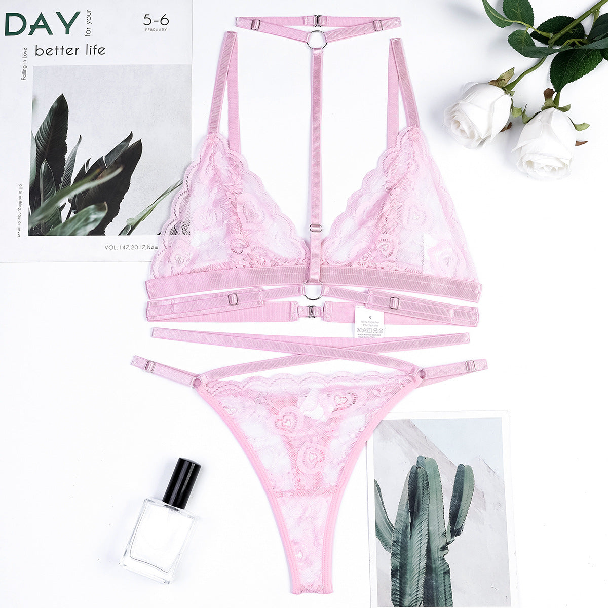 Feel playful and seductive with this Pink Cute Girl Sexy French Lace Halter Underwear, crafted to highlight your curves while offering a flirty, feminine style. The thin, see-through lace fabric...