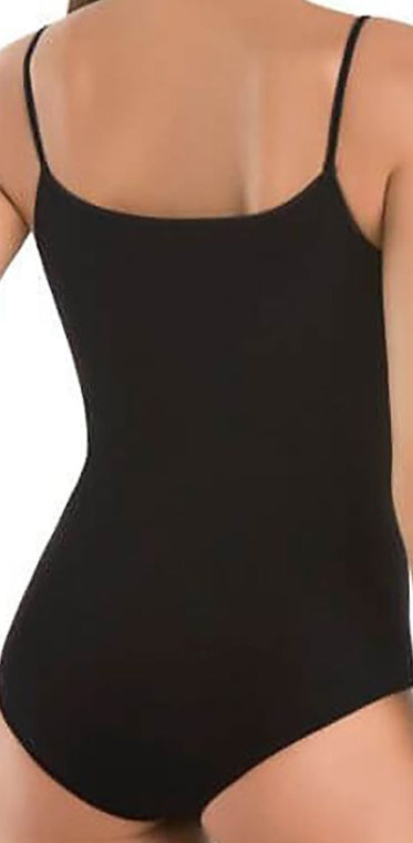 Enhance your everyday wardrobe with this plus size black bodysuit, crafted from high-quality viscose with a touch of lycra for a soft, stretchable, and comfortable fit. The compact design provides excellent coverage while shaping and emphasizing your silhouette. Featuring thin shoulder straps, a semi-circular neckline, and elastic hems around the...