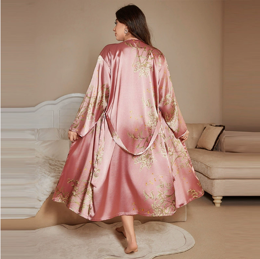 • Red Satin Long Bathrobe – Sexy, Loose, and Comfortable Nightgown for Women
