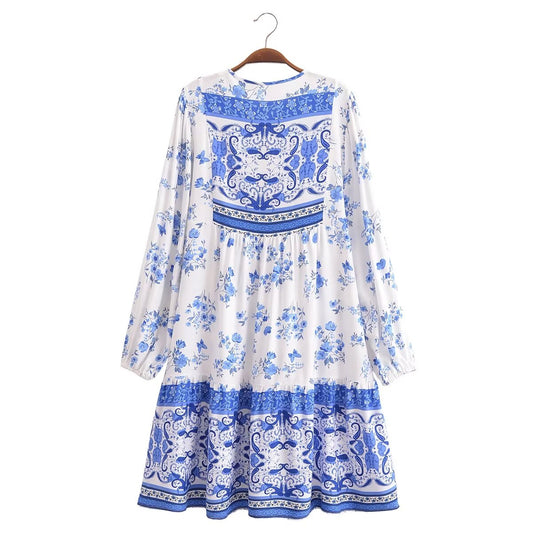 Step into the cozy charm of early autumn with this printed bohemian maxi dress made from smooth, breathable rayon fabric. Designed with a flowing silhouette, it features long sleeves, a relaxed fit, and a colorful print that captures the essence of boho chic. The soft rayon material feels gentle on...